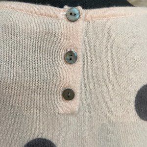 This Saks Fifth Avenue 100% cashmere pink and gray polka dot sweater is light, soft and nothing short of amazing! It is lightweight and delicate and will need a camisole or tank top under it.