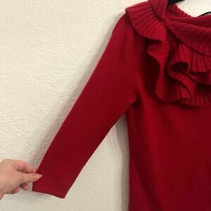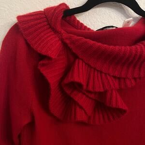 Saks Fifth Avenue 100% Cashmere Sweater S Red Holiday Christmas Ruffle Collar