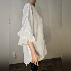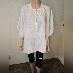 Saks Fifth Avenue 100% Linen Ruffle Boxy Oversized White Blouse Size Xl