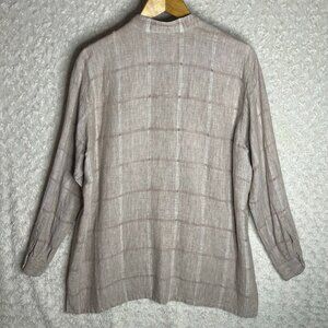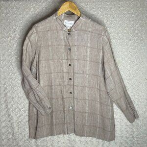 Saks Fifth Avenue 100% Linen Women’s Lightweight Button Up Shirt Size UK 16 US Large Brown Beige Plaid Pattern. Garment is in very nice overall condition. Looks new or rarely and lightly worn. No rips, no stains, no snags, no pilling, no sacking out of the fabric (or elastic or leather) Noted. Open to reasonable offers.