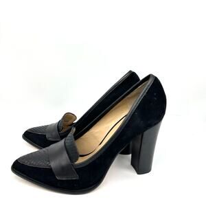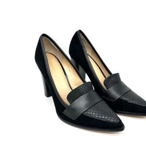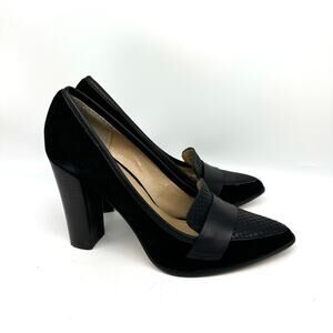 Saks Fifth Avenue Aileen Black Suede And Leather Pointed Toe Heels Womens Size 7