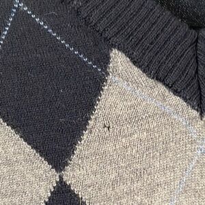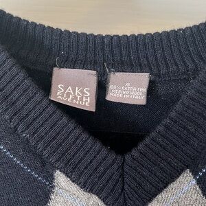 Saks Fifth Avenue Argyle Sweater - Marino Wool - V-Neck - Mens XL