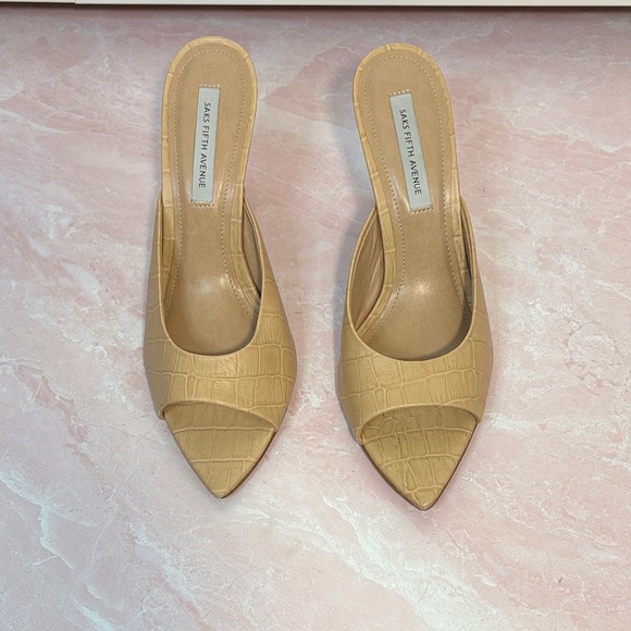 Saks Fifth Avenue Beige Croc-Embossed Mules