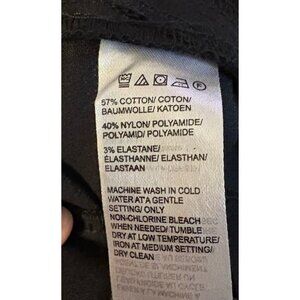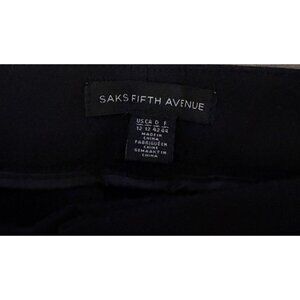 This is a pair of Saks Fifth Avenue black cropped pantacourt Capri for women in size 10. The pants feature a cuffed hem, adding a stylish touch to the classic design. Perfect for adding a modern and sleek look to any outfit, these pants are versatile and timeless in their style. Made by a reputable brand known for quality, these pants are sure to become a staple in any woman's wardrobe.