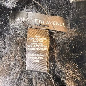 Saks Fifth Avenue Black Faux Fur Trim Scarf Loop New NWT $59.99