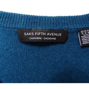 Saks Fifth Avenue Black Label 100% Cashmere V-Neck Sweater Size M Teal #749