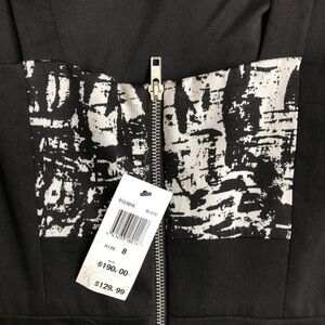 Back zip closure. Small tank straps. Side peplum detail. Printed front and back panels.