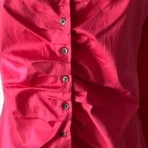 Brighten your wardrobe with this stylish pink button-up shirt.