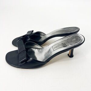 Saks Fifth Avenue Black Leather Bow Kitten Heels Size 7.5 90's Y2K HOCO Italy