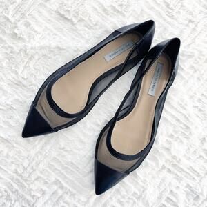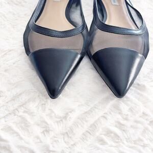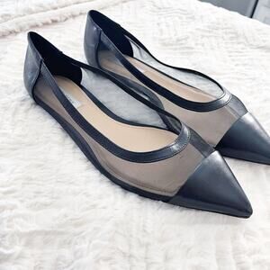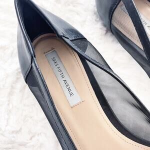 Saks Fifth Avenue Black Mesh and Leather Pointed Flats