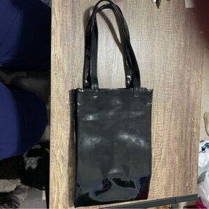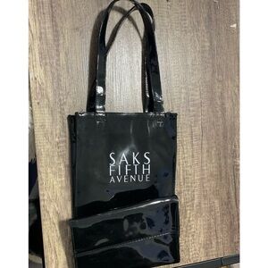 Saks Fifth Avenue Black Patent Leather Pocket Shopping Bag Tote