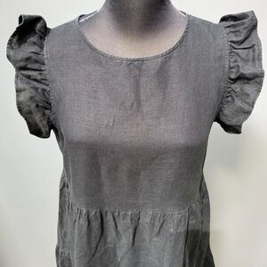 Saks Fifth Avenue Black Ruffle Sun Dress 100% Linen Medium