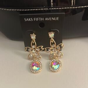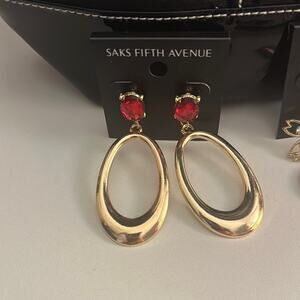 Saks Fifth Avenue Black Tote Bag Bundle with 6 pairs of Saks earrings.
