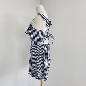 Saks Fifth Avenue Black White Gingham Ruffle Romper Tie Back Cotton Size M