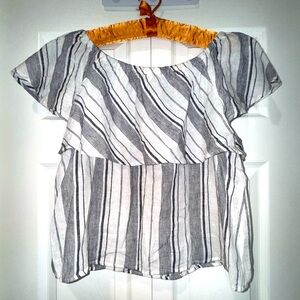 Saks Fifth Avenue Black grey and White Striped off the shoulder Blouse. Size M
