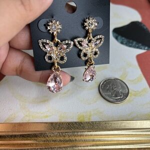 Pretty faux gold plated earrings with pink crystals & rhinestones