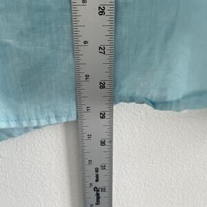 Saks Fifth Avenue Button Up Shirt Men L Mint Blue Linen Slim Fit Roll Tab Resort