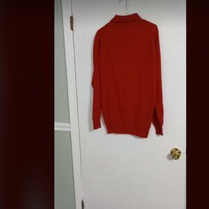 gently used condition. size L. red. cashmere sweater. collared/long sleeve polo sweater style. made in Scotland.