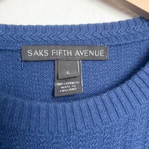 Saks Fifth Avenue Cashmere Sweater Mens Large Blue Long Sleeve Knit Crewneck