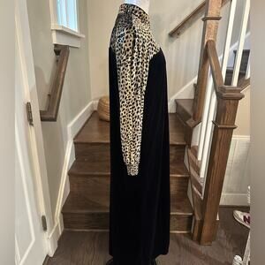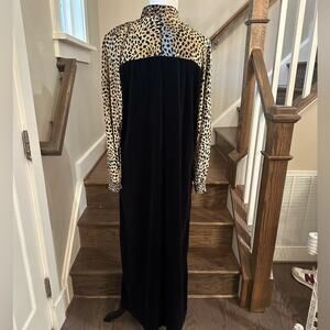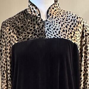 Saks Fifth Avenue Cheetah / Black Velour Zip Up Nightgown Size Small