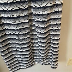 Saks Fifth Avenue Chevron Striped Pattern Navy & White Spaghetti Strap Maxi Dress. These dress gives me major 90s Y2K vibes. White short slip with cool maxi overlay. Sexy slit up front. Very good used condition. Size small.