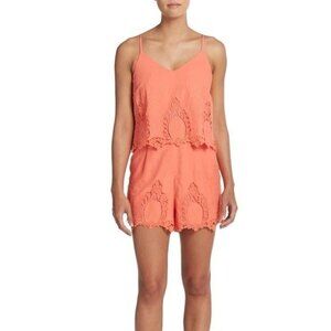 Saks Fifth Avenue Coral Crochet Lace Sleeveless Romper M