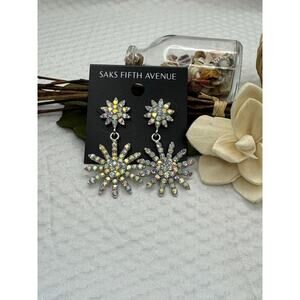 Elevate any look with these dazzling Saks Fifth Avenue crystal starburst drop earrings. Featuring brilliant AB rhinestones arranged in bold starburst patterns, these earrings bring major sparkle and glam. Lightweight with a comfortable post-back design.