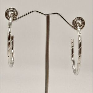 Saks Fifth Avenue Double Hoop Red Crystal Drop Earrings 2 inch