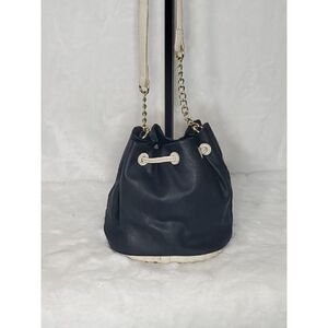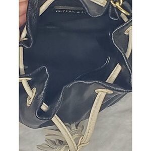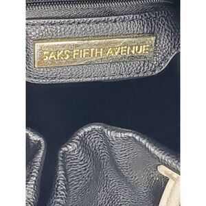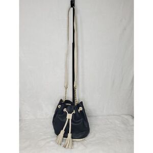 Saks Fifth Avenue Drawstring Vegan Leather Black /Ivory Crossbody Purse Bag