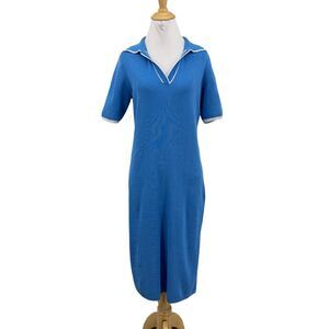 SAKS FIFTH AVENUE DRESS WOMENS M MEDIUM BLUE SHORT SLEEVE POLO COLLAR TRIM MIDI