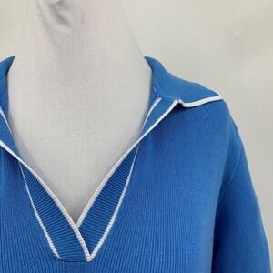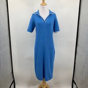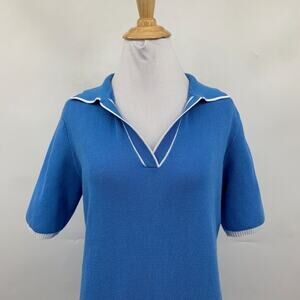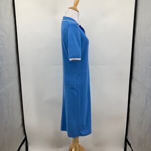 Saks Fifth Avenue Dress Womens M Medium Blue Short Sleeve Polo Collar Trim Midi