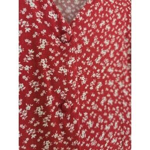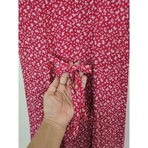 This Saks Fifth Avenue dress in size 2 is a stunning red dress with a dutsty floral pattern, perfect for various occasions such as travel, weddings, parties, and more. Made from viscose fabric with a rayon texture, this midi dress features a V-neckline, short flutter sleeves, and button closure. The dress has a fit and flare style with a bohemian theme, making it ideal for summer, fall, and spring seasons. The dress also boasts accent details like a back tie closure, adding a touch of elegance to the overall look.
