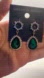 Dazzling teardrop earrings with emerald green stones. Surrounded by gold and silver accents. Ideal for a luxurious touch.