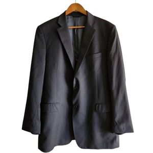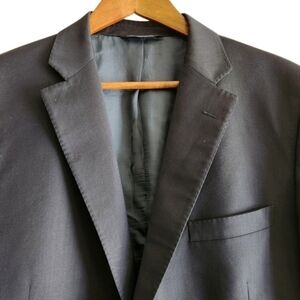 Great preowned condition wool silk blend 2 button closure has pockets notched lapel career office wear formal event gala prom black tie