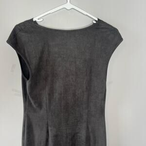 Saks Fifth Avenue Faux Suede Studded Hem Draped Neck Sleeveless Dress Gray 6