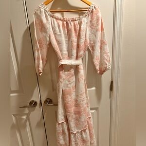 Saks Fifth Avenue Floral Pink and White Belted Linen Sundress