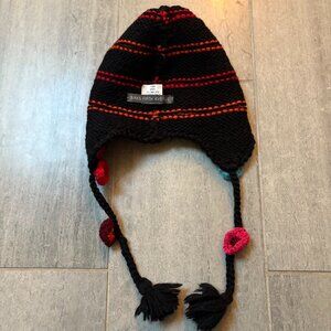 Saks Fifth Avenue hat, Saks Fifth Avenue wool hat, floral wool hat, floral beanie, ear flap hat, winter hat, knit hat, wool beanie, feminine hat, cold weather accessories, cozy hat, lambswool beanie, black winter hat, warm knit hat, braided tassel hat, Saks Fifth Avenue winter accessories, Saks Fifth Avenue hat, outdoor beanie, soft wool hat, ski hat, cold weather beanie, snow hat, stylish winter hat, black hat, wool hat ear flaps, wool blend beanie, cozy winter gear, warm wool cap, classic Saks Fifth Avenue style, lambswool knit, fleece lined beanie, unisex winter wear, pom tassel hat, fall winter accessory, casual beanie, alpine hat
