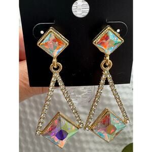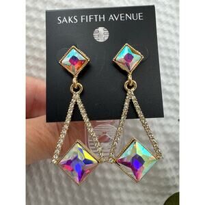 Saks Fifth Avenue Geometric AB Crystal Drop Earrings – Goldtone – New on Card