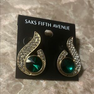 Saks Fifth Avenue Gold Earrings with Green Accents