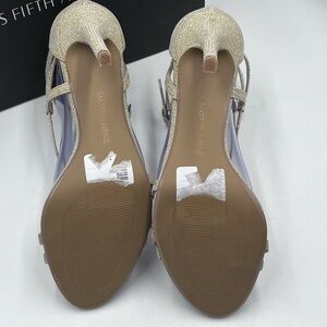 Saks Fifth Avenue Gold and Ankle Strap Stiletto Heels Size 8.5 M