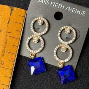 Saks Fifth Avenue Gold and Clear Crystal Earrings 2 inch