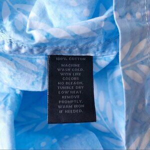 Saks Fifth Avenue Black Label lightweight cotton graphic short-sleeve button-front shirt. Light blue with white vines and dots design. Coconut shell buttons. New with tags. Size XL.