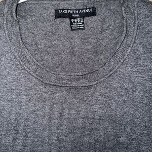 Saks Fifth Avenue Gray Crewneck Sweater with Ribbed Details
