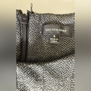 This stunning gray herringbone dress from Saks Fifth Avenue features a simple neckline and a pleated A-line silhouette, perfect for cocktail parties or a night out. The sleeveless design and structured pleats add a touch of elegance and movement, making it a standout piece for any special occasion.