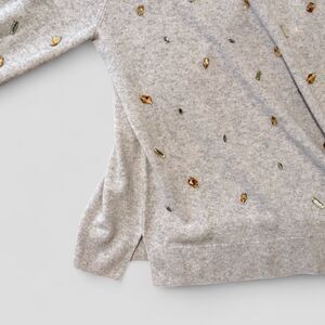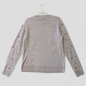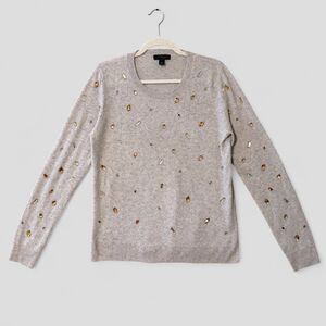 Saks Fifth Avenue Heather Gray Stone Embellished 100% Cashmere Sweater Size Lrg