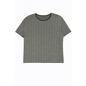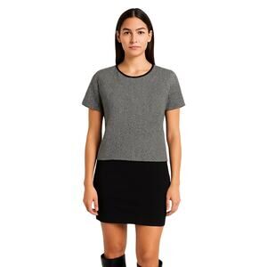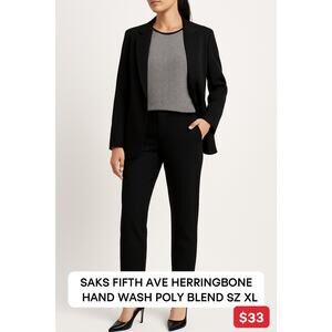 Saks Fifth Avenue Herringbone Top Poly Blend Black White Short Sleeve M