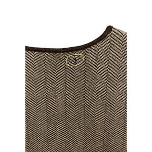 Elegant Saks Fifth Avenue women’s short-sleeve top featuring a chic black and white herringbone pattern. Soft poly blend fabric with a smooth texture and gentle drape. Perfect for office, travel, or casual outings.
