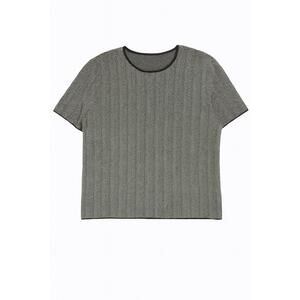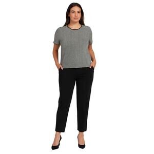 Saks Fifth Avenue Herringbone Top Poly Blend Black White Short Sleeve XL