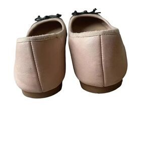 Saks Fifth Avenue Inez Leather Balllet Blush Pink Black Bow Flats Cap Toe Slip On Women’s Shoes SZ 10
