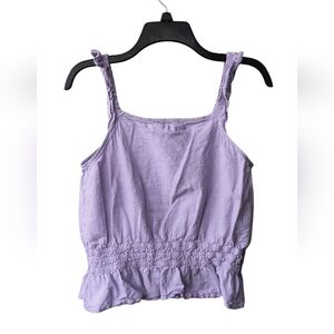 Saks Fifth Avenue Lavender Linen/Cotton Blend Smocked Ruffled Spring Camisole L